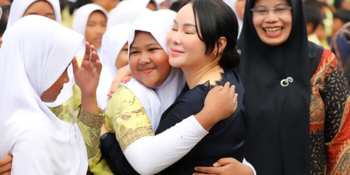 Batam – Suasana ceria menyambut kehadiran Wali Kota Batam, Amsakar Achmad, dan Wakil Wali Kota, Li Claudia Chandra, di SDN 006 Batam