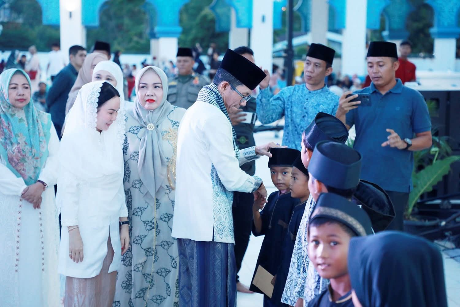 Amsakar-Li Claudia Santuni 1.200 Anak Yatim di Buka Puasa Bersama di Masjid Agung Batam