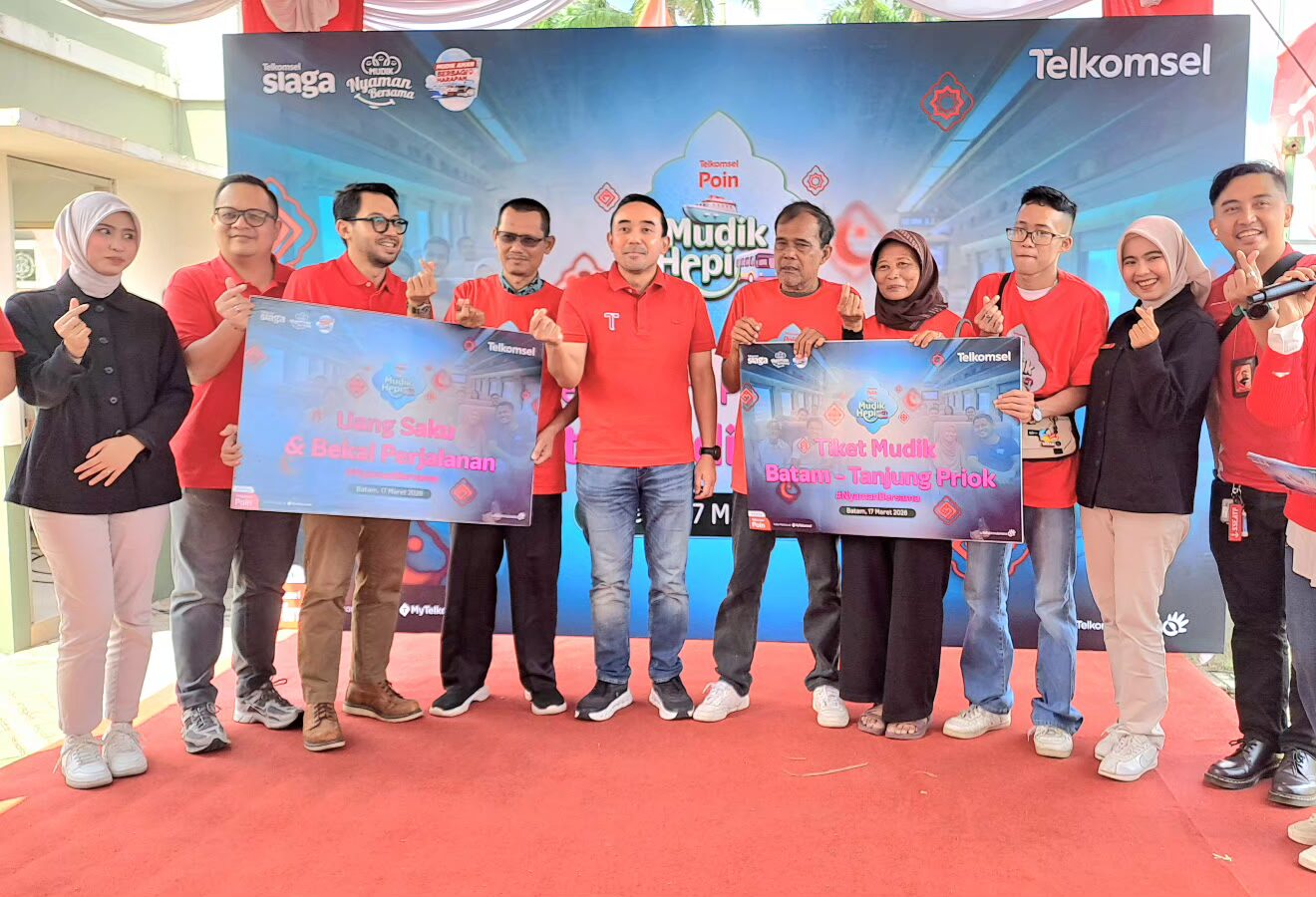 Acara pemberangkatan pemenang undian Mudik Hepi 2026, digelar, Selasa (17/3/2026) dari Gapari Telkomsel, Batam Center, Batam. Sementara 200 pelanggan Telkomsel itu akan berangkat menggunakan kapal Pelni, Rabu (18/3/2026), melalui Pelabuhan Batuampar.