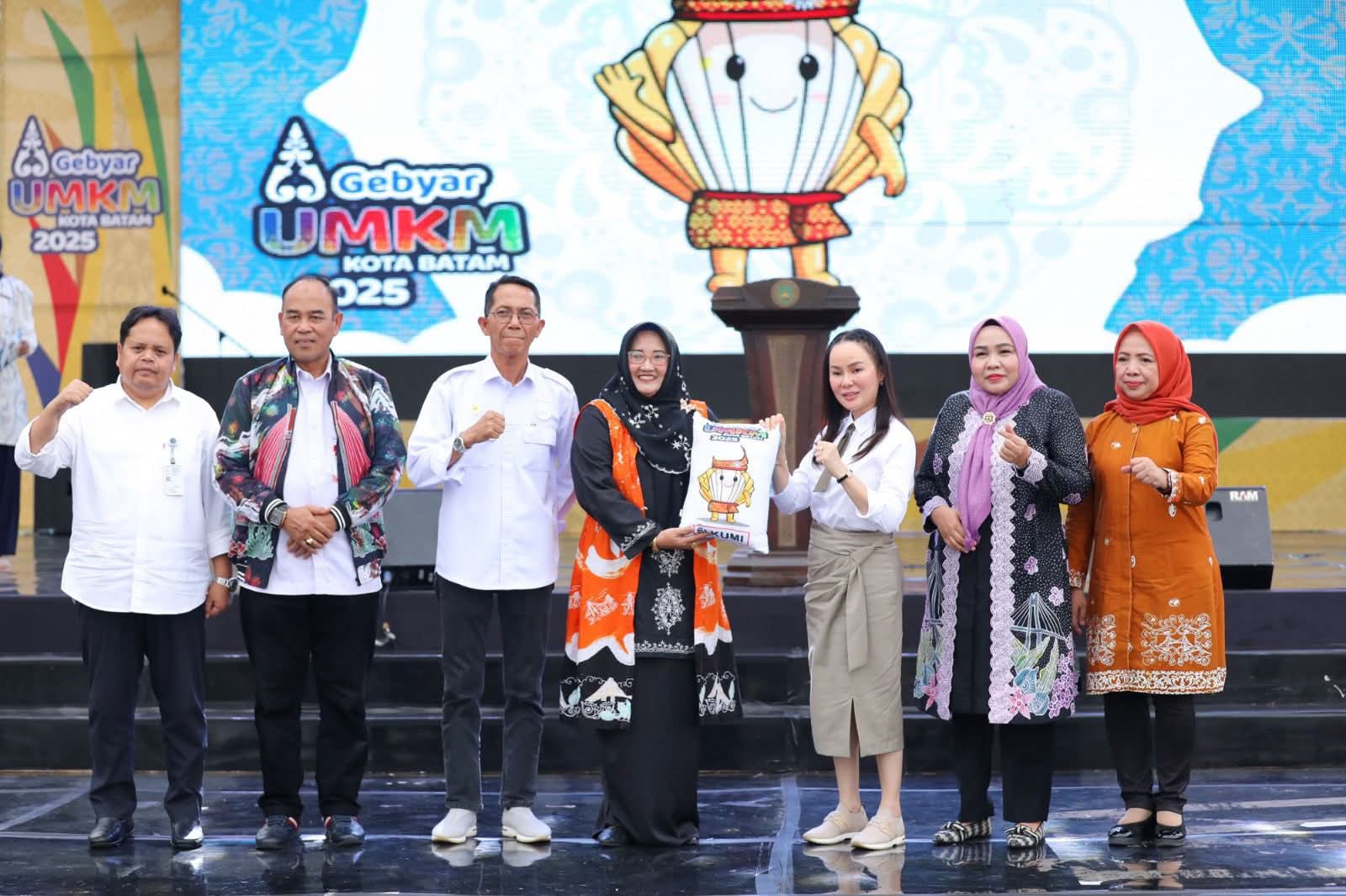 Sebagai bentuk apresiasi, dilakukan penyerahan simbolis souvenir dari Si Kumi kepada salah satu UMKM unggulan. Acara kemudian dilanjutkan dengan pemotongan pita oleh Wali Kota, Wakil Wali Kota, dan Ketua TP PKK Kota Batam sebagai tanda dimulainya rangkaian kegiatan Gebyar UMKM Kota Batam Tahun 2025.***