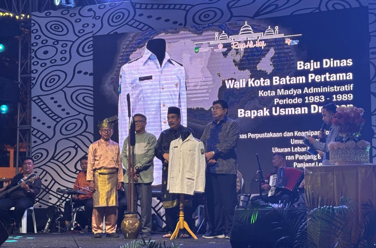 Sementara itu, Ketua Lembaga Adat Melayu (LAM) Kota Batam, Yang Mulia Dato’ Wira Setia Utama Raja Haji Muhammad Amin, menyerahkan koleksi Seragam Wali Kota Batam Pertama kepada Drs. H. Heriman HK, Asisten Administrasi Umum, yang hadir mewakili Wali Kota Batam, Dr. Amsakar Achmad, S.Sos., M.Si.