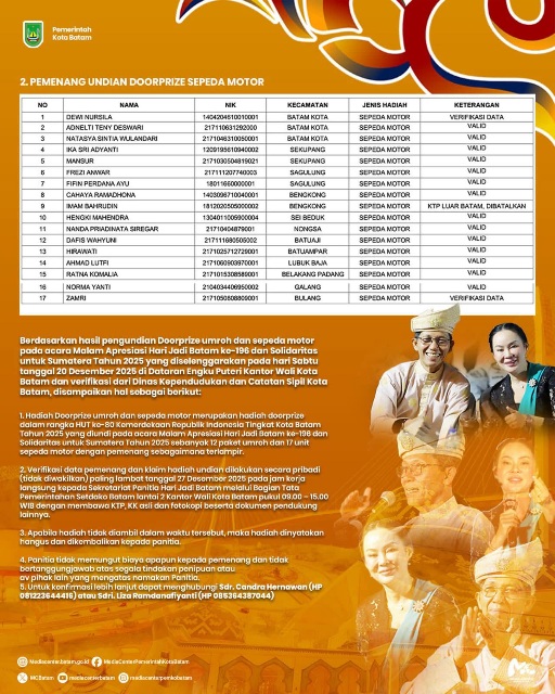 Homepage » Ini Pemenang Undian Umroh dan Sepeda Motor Pemko Batam » 1002111232