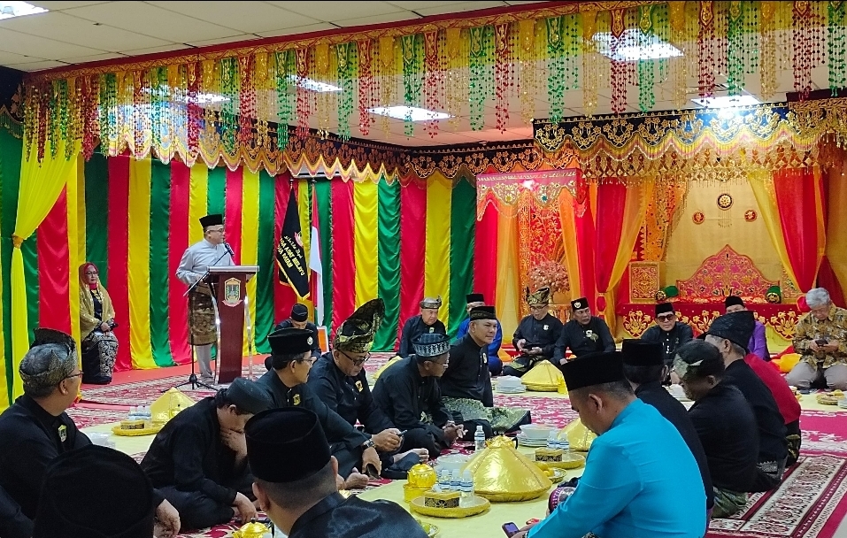 Melengkapi rangkaian sambutan, unsur Ketua LAM Kota Batam, Datok Haji Samsudin Jafar, turut menjelaskan filosofi Makan Berhidang yang sarat makna dalam adat Melayu.