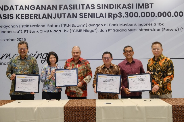 Jakarta – PT PLN Batam menandatangani Perjanjian Fasilitas Sindikasi Pembiayaan berdasarkan prinsip Ijarah Muntahiyah Bittamlik (IMBT) bersama PT Bank Maybank Indonesia Tbk, PT Bank CIMB Niaga Tbk, dan PT Sarana Multi Infrastruktur (Persero). Penandatanganan ini menjadi tonggak penting dalam upaya PLN Batam mewujudkan pembangunan Pembangkit Listrik Tenaga Gas dan Uap (PLTGU) Batam #1 berkapasitas 120 MW, melalui pendekatan pembiayaan yang inovatif, efisien, dan berkelanjutan.